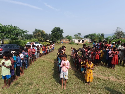 On 7th November, when the Daana Satram was conducted in Haludboni, many small children could not be given jackets because we did not have enough material of their sizes. Nutan Swamiji was pained by the turn of events and wished that CIRD volunteers buy the required number of jackets of proper sizes and give all those children travelling to Haludboni again.