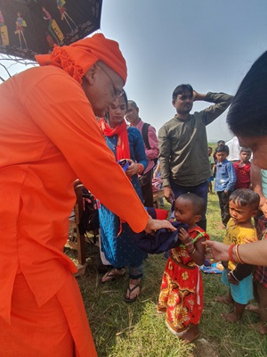 Presenting moments captured during the recent visit to Haludboni, Jharkhand, where Nutan Swamiji, accompanied by volunteers and devotees, extended their heartfelt warmth and love to the tribal community. These images mirror the joyous distribution of sarees, dhotis, children’s jackets, sweets, biscuits, and nourishing food packets, leaving a profound impact on the lives of over 270 individuals. Witnessing Nutan Swamiji engage in heartfelt conversations added a layer of warmth and depth to this meaningful exchange, symbolizing not just a distribution of gifts but a genuine connection with the community.