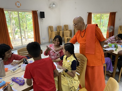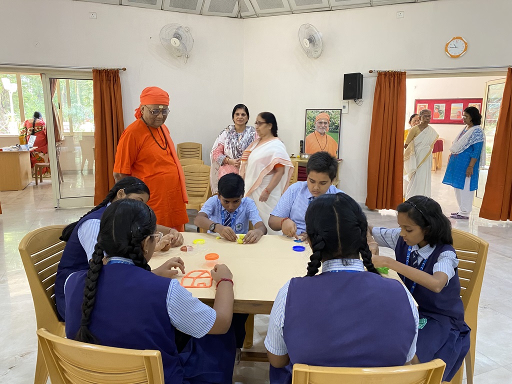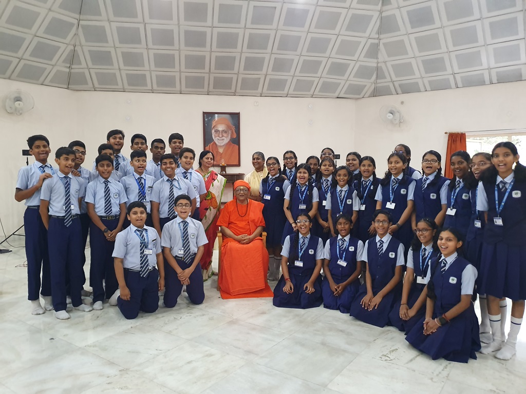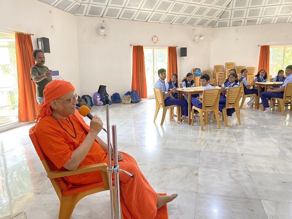💬 Swami Nirvisheshananda Tirthaji captivated the young minds with a thought-provoking interactive session, where he shared enlightening and inspiring insights, leaving a lasting impact on their hearts and minds.