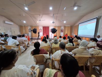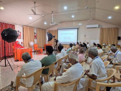 Silent Sitting in Vijnana BhavanAll the sessions consistently highlighted that spirituality, while rooted in deep mental and intellectual enquiry, must ultimately be lived and practised in our day-to-day life – especially through our interactions with the people around us. It is through these interactions that the true test and application of spiritual understanding take place, making the journey both meaningful and transformative.