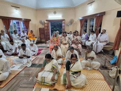 After the Pushpa-samarpanam each day, Ma lovingly introduced the Ashram staff from various departments – Annakshetra, Accounts, Publication, Front Office, Housekeeping, Garden, etc. Each member was personally acknowledged, often with little anecdotes or touching details about his or her life and contribution. It was heartening to witness the respect and affection with which every person was recognised. This gesture reflected how deeply all the three Saints are personally interested in the well-being and growth of every member of the Ashram family.