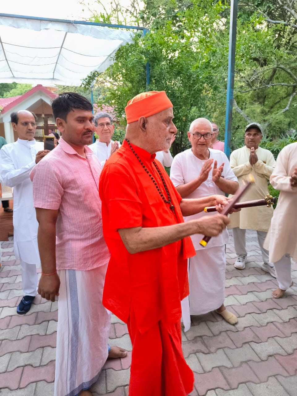 Pranams with aabir were offered to the Guru-parampara shrine and at Poojya Swamiji's chair. Pranams to Nutan Swamiji and Ma with aabir ... Read More