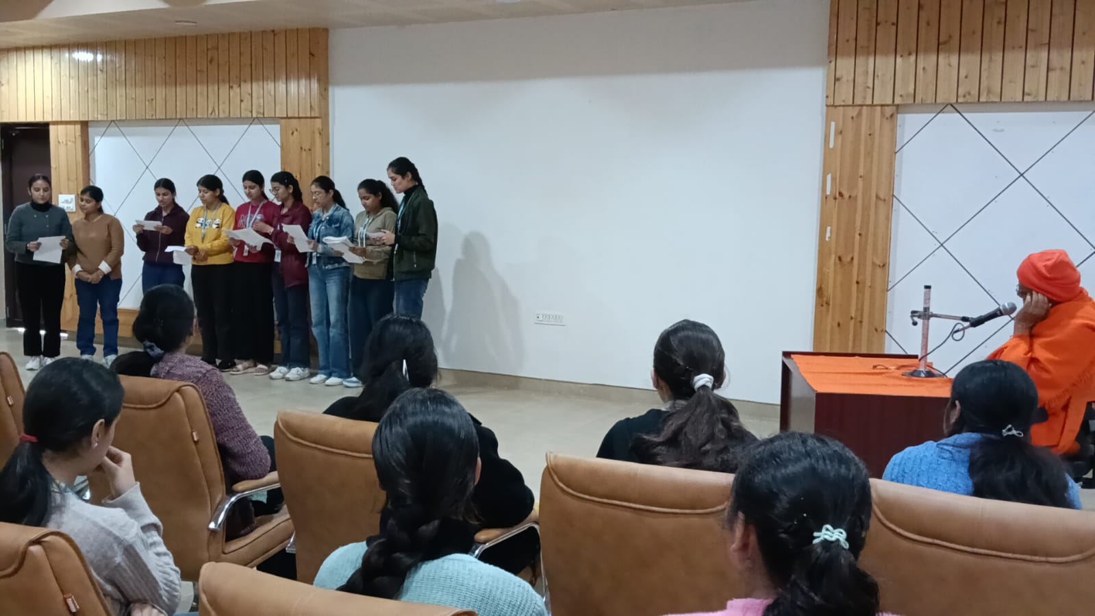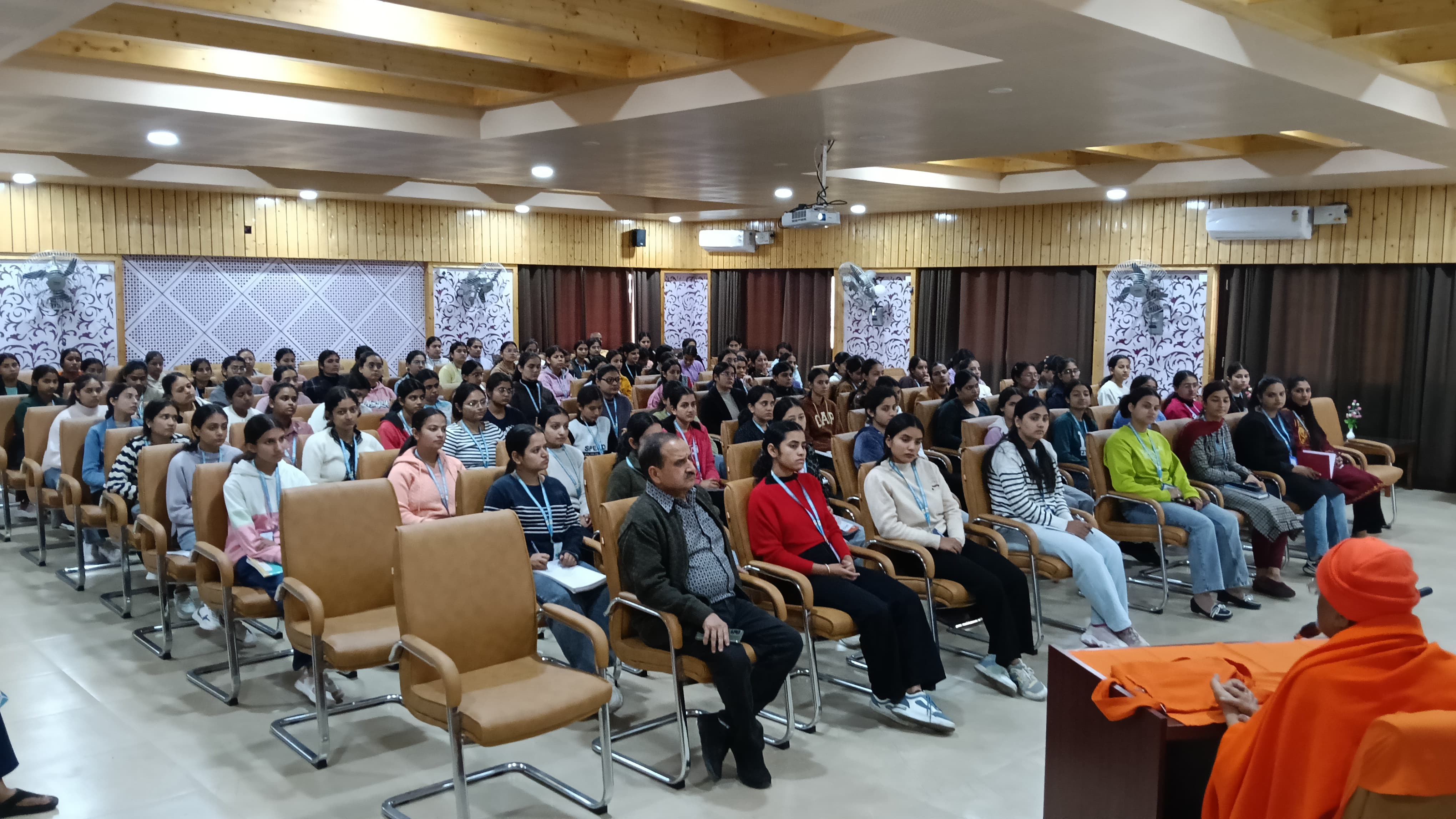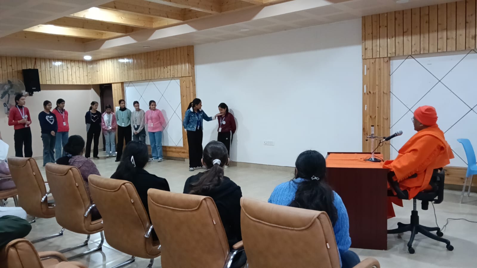 Nutan Swamiji conducted this youth programme for 95 nursing students and teachers of VMRT Capt Saurabh Kalia Memorial Nursing College, Palampur. Sessions were conducted for 1.5 hours over 5 days at the auditorium of Vishranti (Palampur) – a senior citizens’ home within the same VMRT campus. The first day began with.. Read More